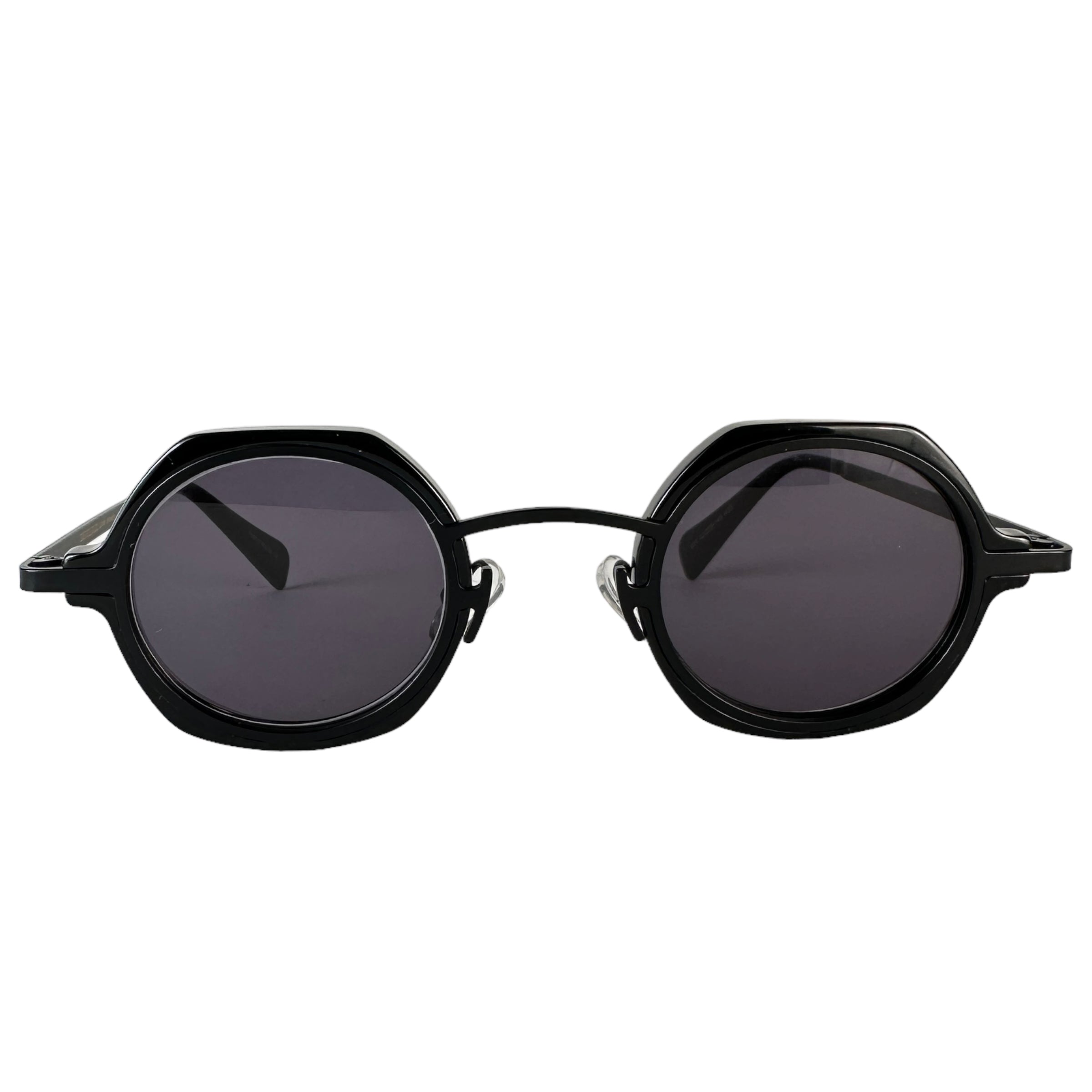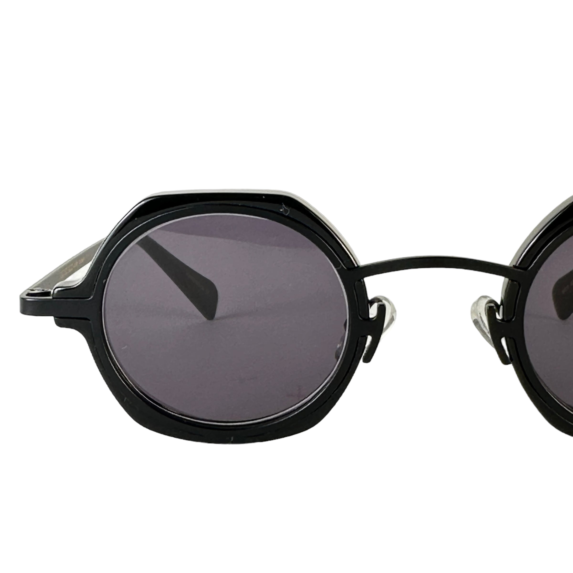 - ORANGE AND BLACK 4MM CURED CELLULOSE ACETATE FRAME WITH CUSTOM ACETATE TEMPLES FEATURING PRECIOUS HARDWARE AND BLACK LENSES