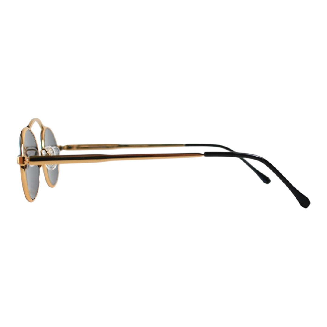 - CLEAR 4MM CURED CELLULOSE ACETATE FRAME WITH CUSTOM ACETATE TEMPLES FEATURING PRECIOUS TITANIUM HARDWARE AND GREEN GRANDIENT LENSES